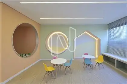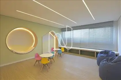 salão de festas, hall de entrada imponente, bicicletário, térreo com área de lazer, piscinas adulto e infantil climatizadas, quadra poliesportiva, playground, fitness, espaço gourmet, lareira, espaço kids e pet place.