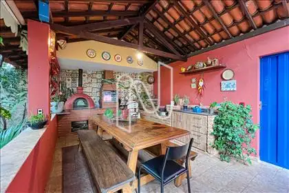 Esta belíssima residência oferece tudo o que sua família precisa: ambientes espaçosos, integração com a área externa, área verde com árvores frutíferas e um espaço gourmet completo com churrasqueira e fogão a lenha.