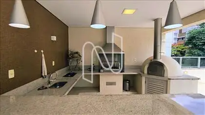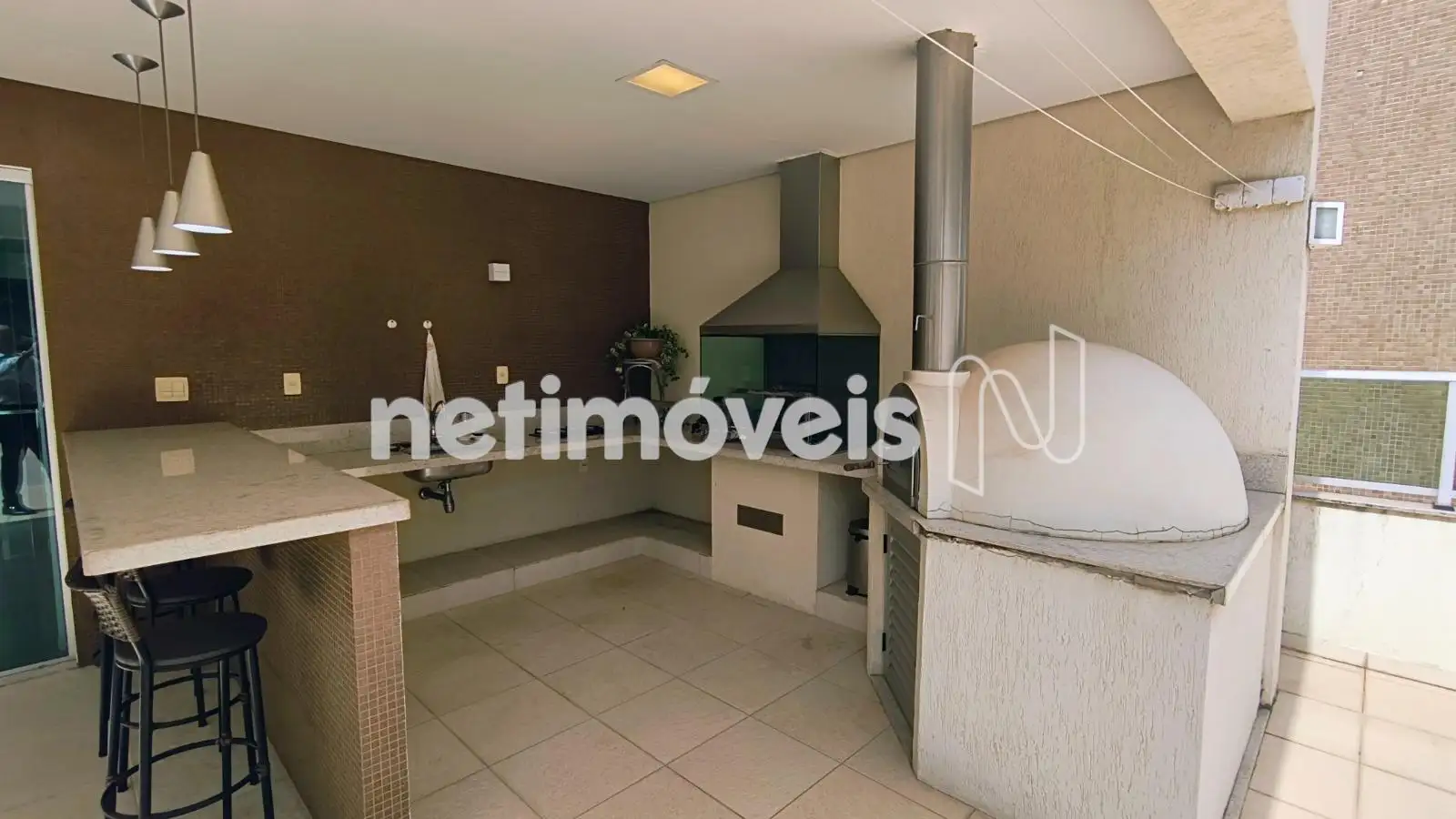 Amplo terraço muito agradável com espaço gourmet, churrasqueira, forno, piso cerâmica e bancada em granito.